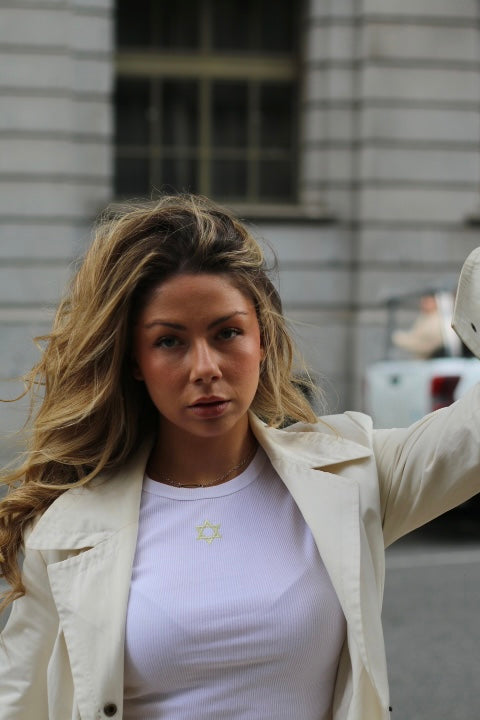 Designed for comfort, confidence, and connection — this ribbed long sleeve is a modern essential with a meaningful touch. Made from a breathable blend of cotton and elastane, it offers a flattering slim fit that moves with you. The embroidered Star of David rests over the heart — a subtle expression of identity, faith, and inner strength.